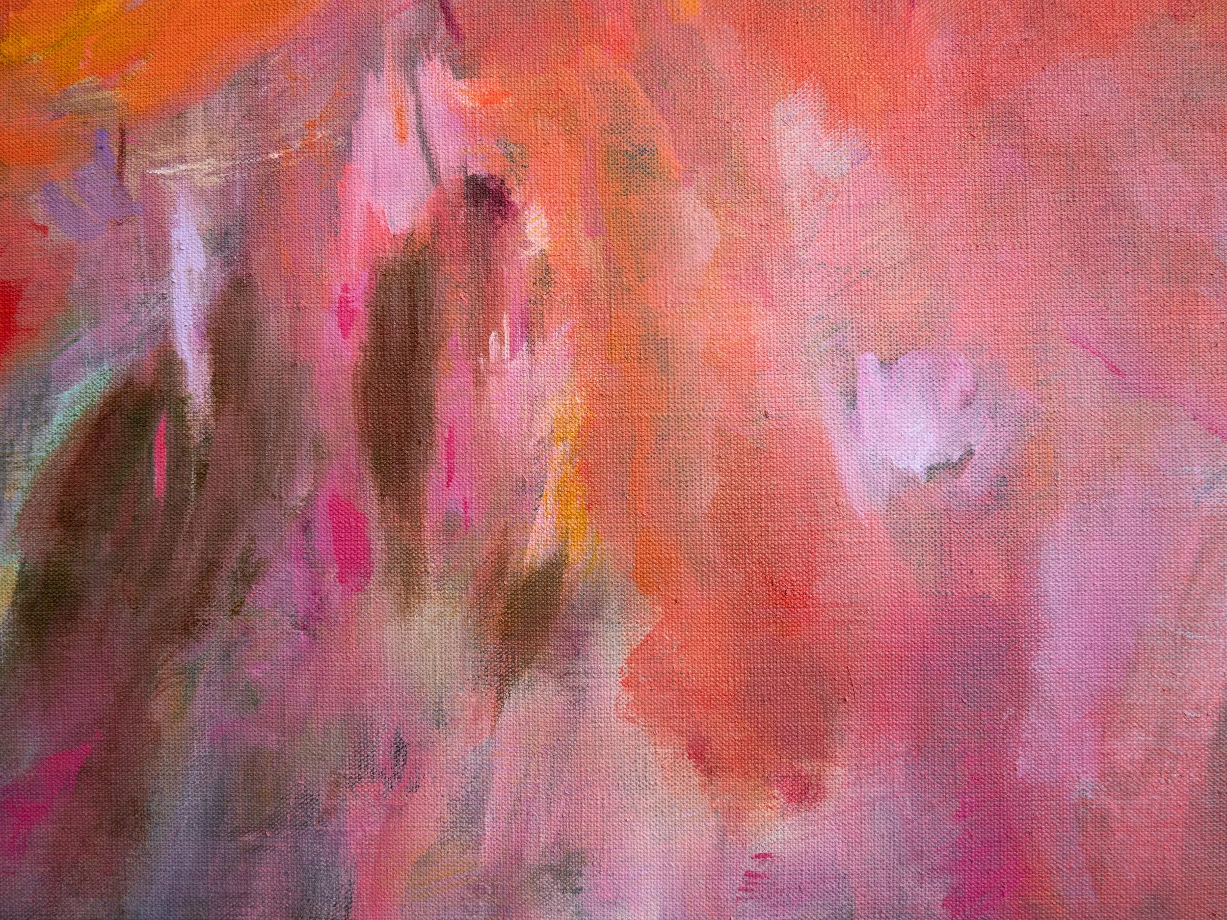 Je la regarde, et elle m’évoque une immersion : dans un flux continu, ininterrompu ; le mouvement, dans sa variation continuelle, et son élan presque lourd, lent, chargé. La recherche autour de cette variation sera prolongée sur l’ensemble des toiles.